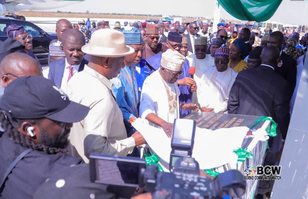 The President, who was on a three-state official tour of Borno, Bauchi and Lagos States, arrived Maiduguri at 12.30 pm, and proceeded to commission the international wing of the Muhammadu Buhari Airport, a new VIP extension, Electric Vehicles, intra-state buses, tricycles, and three model primary, junior secondary and secondary schools.