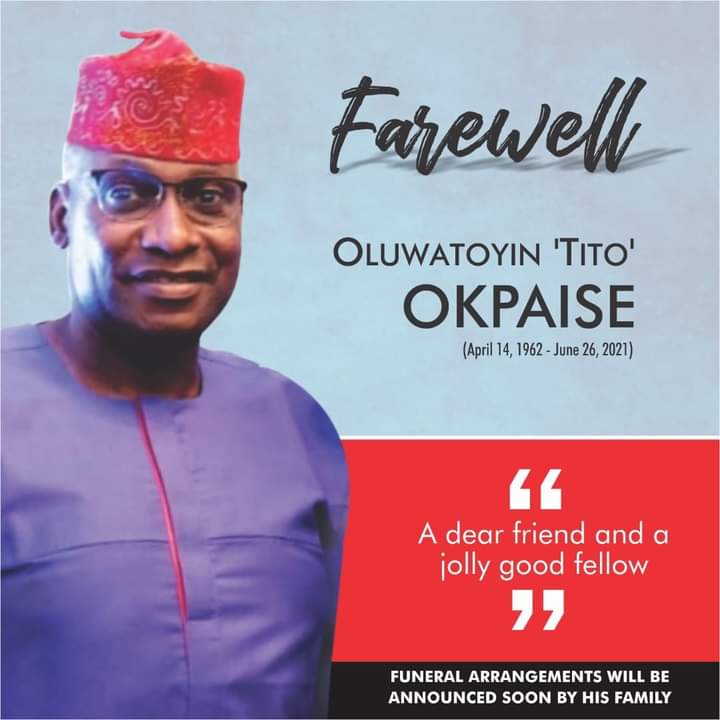 Tick-tock, tick-tock! The clock chimes, and it’s Oluwatoyin ‘Tito’ Okpaise’s turn. It’s one whole week, already seven days, that our Tito––a jolly fellow and a good man––passed on in Lagos in the early hours of Saturday, June 26, 2021. Those wishing it was a rumour have finally accepted that the fashionable gentleman, with a disarming infectious smile and deep-throated laughter, has said his goodbye and goodnight. While many are still inconsolable, we wish the dark and handsome Edo-born man I fondly called ‘elder statesman’ journey mercies. His 59-year sojourn here has ended. Abruptly but with sweet memories.