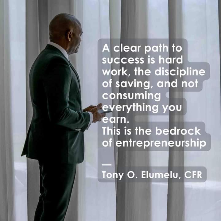 African business leader and foremost philanthropist, Tony Onyemaechi Elumelu has identified “hard work, entrepreneurship, resilience, discipline, sacrificing today for a better tomorrow as pathways to sustainable progress and prosperity”.