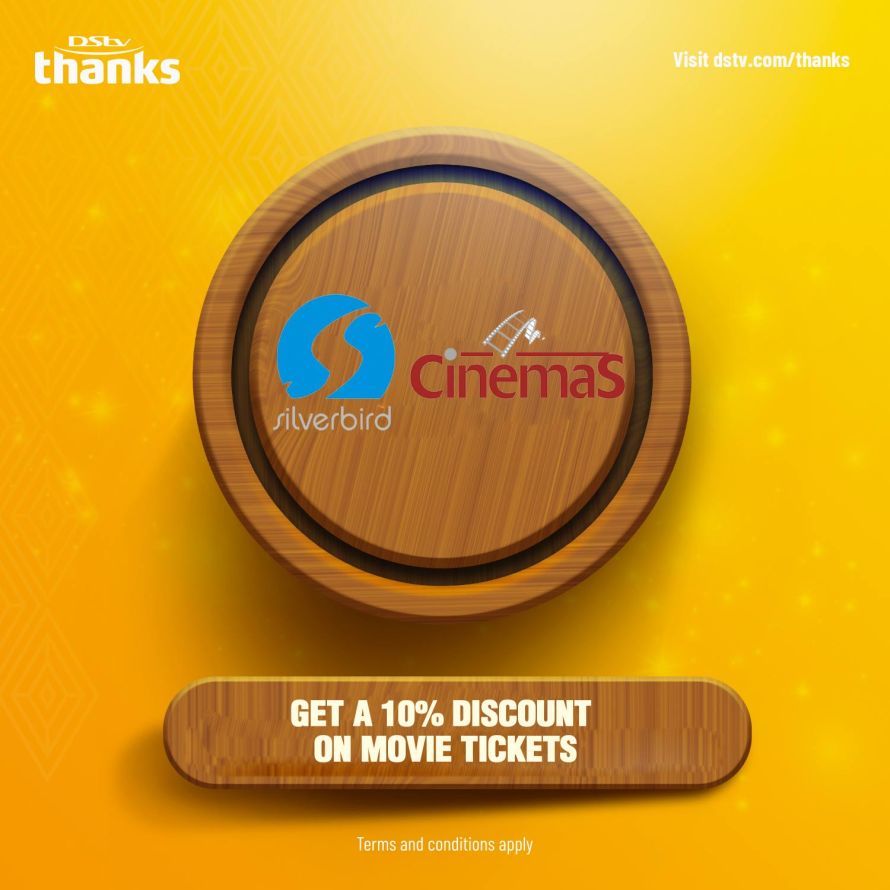 Movies: Less stress for DStv subscribers as they can get 10% off movie tickets from any Silverbird cinema. Exciting yeah!!