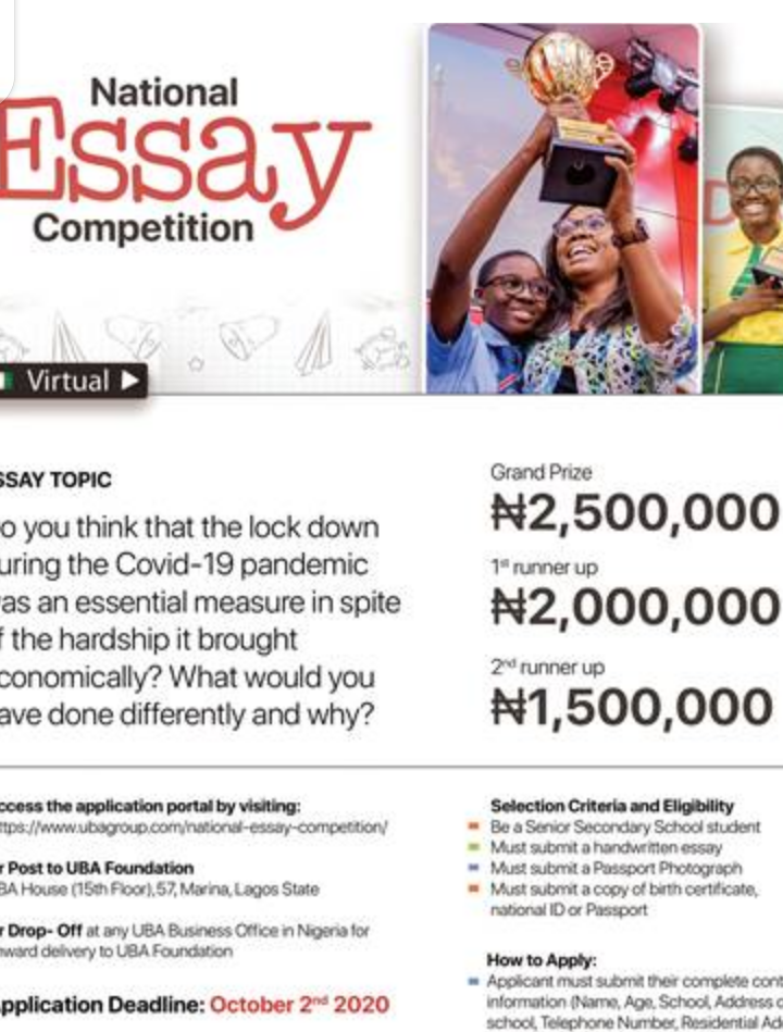 Students can apply for the National Essay Competition 2020 at: www.ubagroup.com/national-essay-competition;