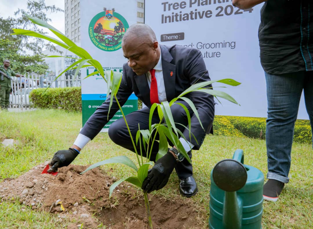 Group Managing Director/CEO, United Bank for Africa, Oliver Alawuba planting a tree at the flag-off of UBA Foundation’s Tree Planting Initiative, where the Bank plans to plant 2 million threes across Africa in 2024, held at the UBA Foundation Garden in Marina, Lagos
