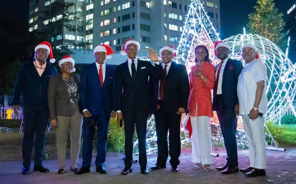 Group Managing Director/CEO, United Bank for Africa Plc, Mr. Kennedy Uzoka; flanked by Executive Director, Chukwuma Nweke; Head of Operations, Alex Alozie; MD-CEO, UBA Foundation, Bola Atta, and other staff members at the 2021 Christmas and New Year Light Up Ceremony of UBA Foundation Garden, at Marina, Lagos on Friday