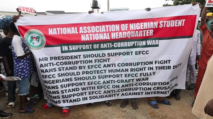 Senate President, Senator Akinteye Babantunde stated that NANS came out to show support for the EFCC in its crusade against any form of corruption.