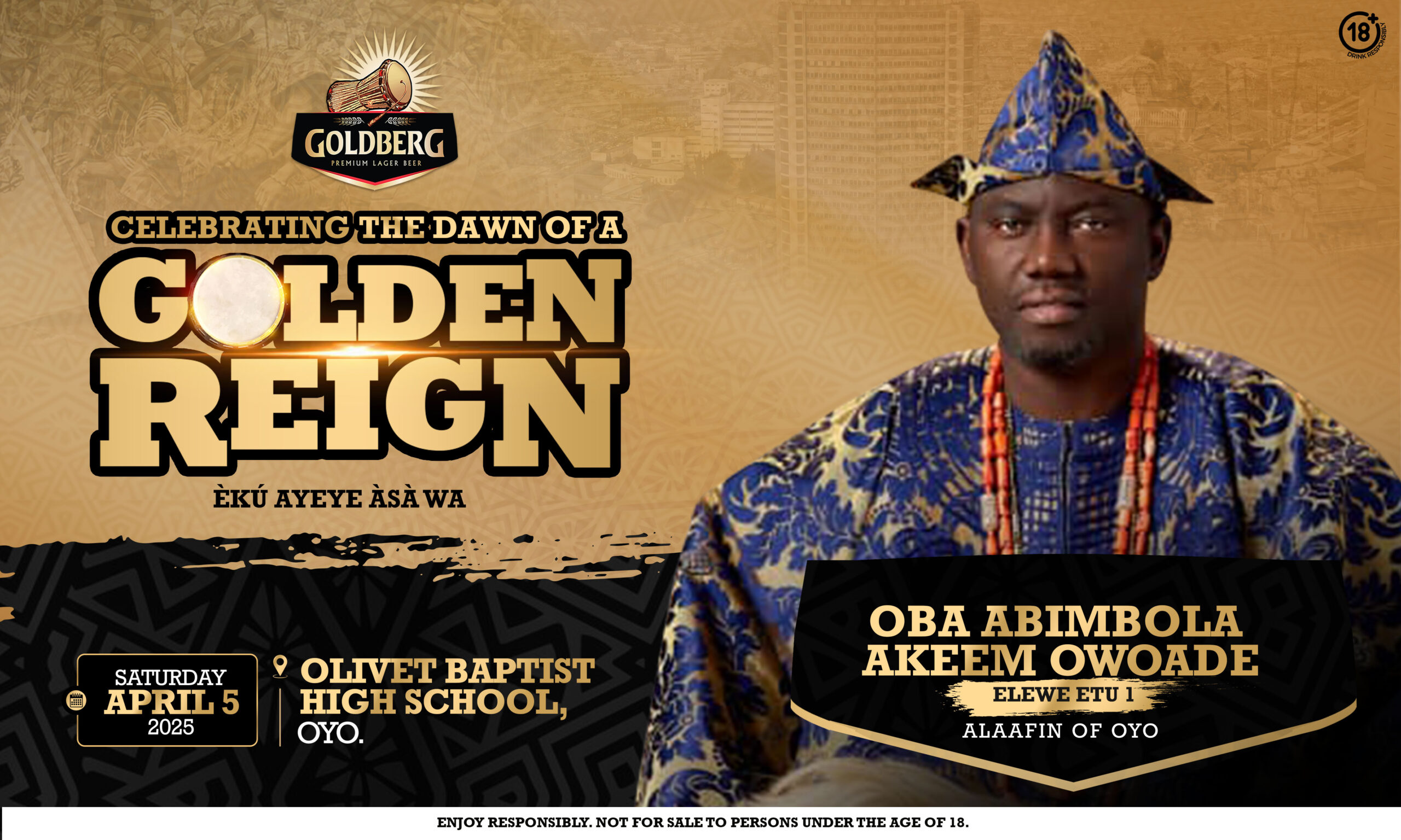 The heartbeat of Yoruba tradition echoes once more as the ancient city of Oyo prepares to crown its 46th Alaafin, His Imperial Majesty, Oba Abimbola Owoade I, on April 5th, 2025. In celebration of this historic moment, Goldberg Lager Beer, the Gold Standard in lager, has proudly aligned with the coronation festivities to honor a golden legacy rooted in royalty, resilience, and timeless heritage.