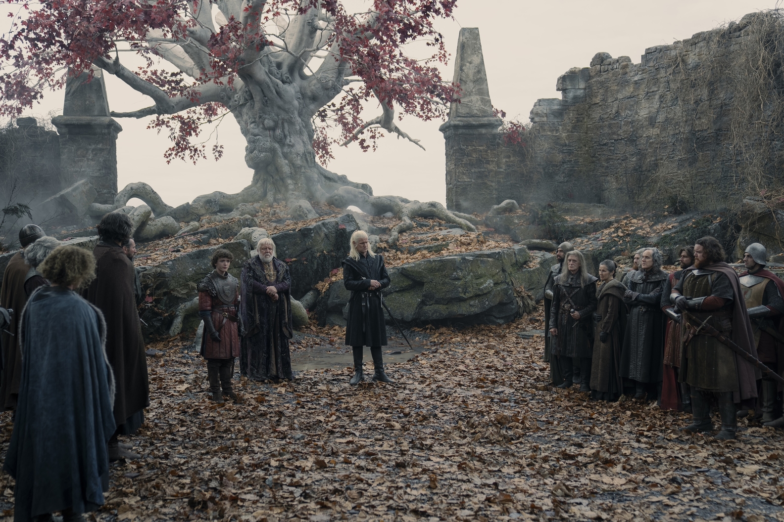 Corlys, stunned by Addam’s boldness, allows him to focus on dragon riding, leaving their relationship unaddressed. In Harrenhal, young Lord Oscar Tully, newly appointed Lord Paramount of the Riverlands, faces the daunting task of winning the Riverlords’ trust. To maintain peace, he orders Daemon Targaryen to execute Willem Blackwood, fulfilling Lord Oscar’s demand for justice for the savagery inflicted upon House Bracken by Blackwood.