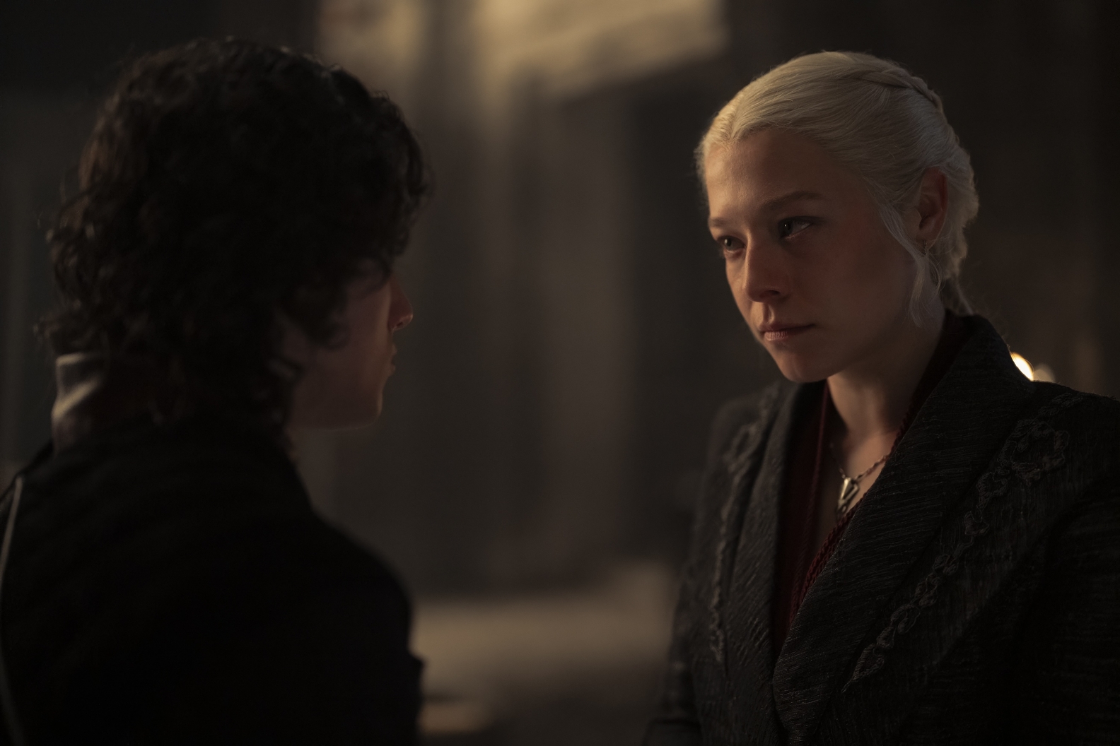 Meanwhile, King Aegon, though in a fragile state, shows signs of recovery, spurred on by the ever-demanding Lord Larys and the maester. In King’s Landing, Grand Maester Orwyle tends to Alicent Hightower’s wounds from the recent uprising, while she retreats to Kingswood, questioning her influence over her realm.