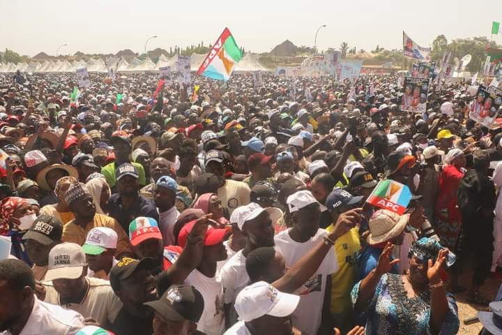 A mammoth crowd of supporters converged on the Trade Fair Complex, Minna venue of the All Progressives Congress Presidential campaign rally in Niger State on Wednesday to receive the party’s Presidential Candidate, Asiwaju Bola Ahmed Tinubu.